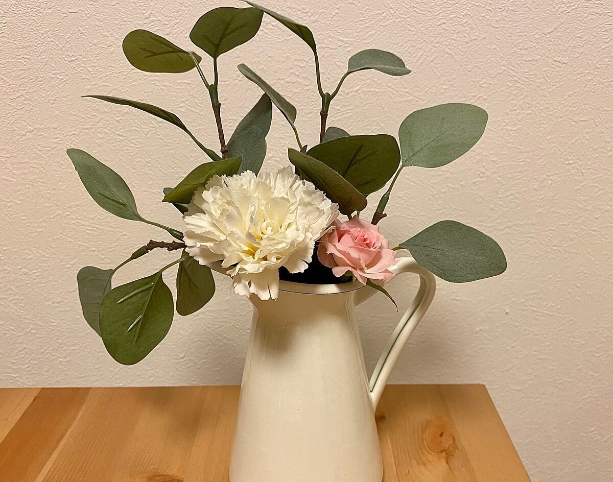 お花自体は小さいものの、グリーンの葉がナチュラルなかわいらしさを演出してくれています。茎の部分はペンチなどでカットすることができるため、花瓶の大きさに合わせて調節することもできますよ。