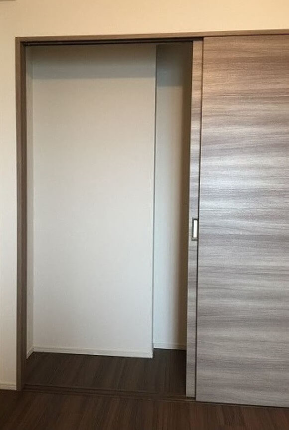 マンションを購入した際間取り変更をし、キッチンを拡張した代わりに寝室のウォークインクローゼットを狭くして引き戸式のものにしました。