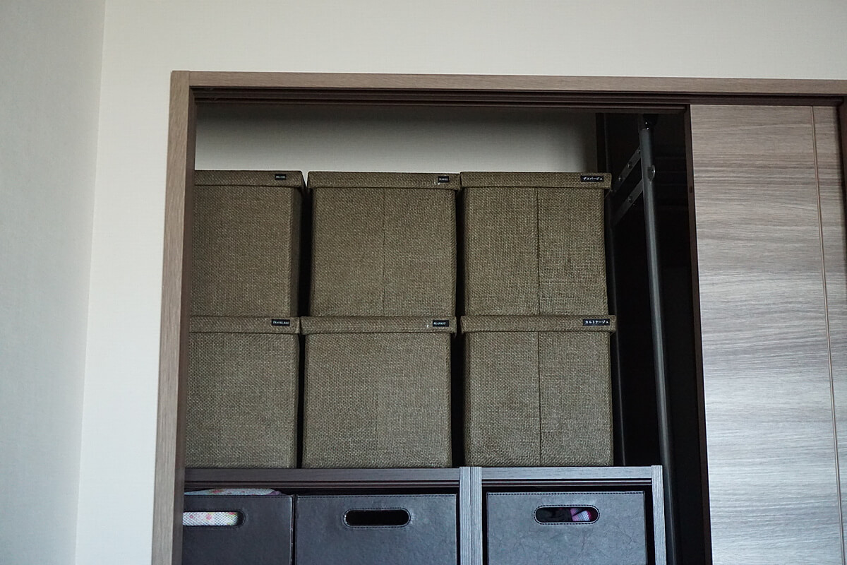 左側の収納ボックスはそのまま取り出すことはできませんが、オフシーズンの衣類を収納することで取り出す必要がなくなるので、デットスペースを作らず家具を設置することができます。