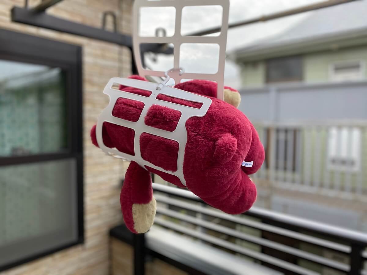 乾かしにくい形のぬいぐるみも、この枕干しハンガーを使えば短時間で乾かすことができますよ。