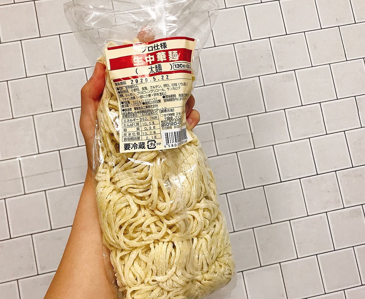 その中でいつも品薄な物がこれ!130gの麺が5玉入った生中華麺の太麺です。このボリュームでなんと298円(税別)。1玉で約60円です。