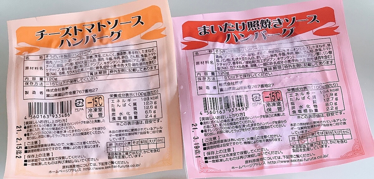 まずはこちら、1つ112円(税別)のチーズトマトソースハンバーグと舞茸照り焼きソースハンバーグです。正直、味はどこにでもあるようなハンバーグでした。舞茸が付いていたり子どもが好きそうな味のソースになっていましたが、肉肉した食感が好きな方には物足りないと思います。