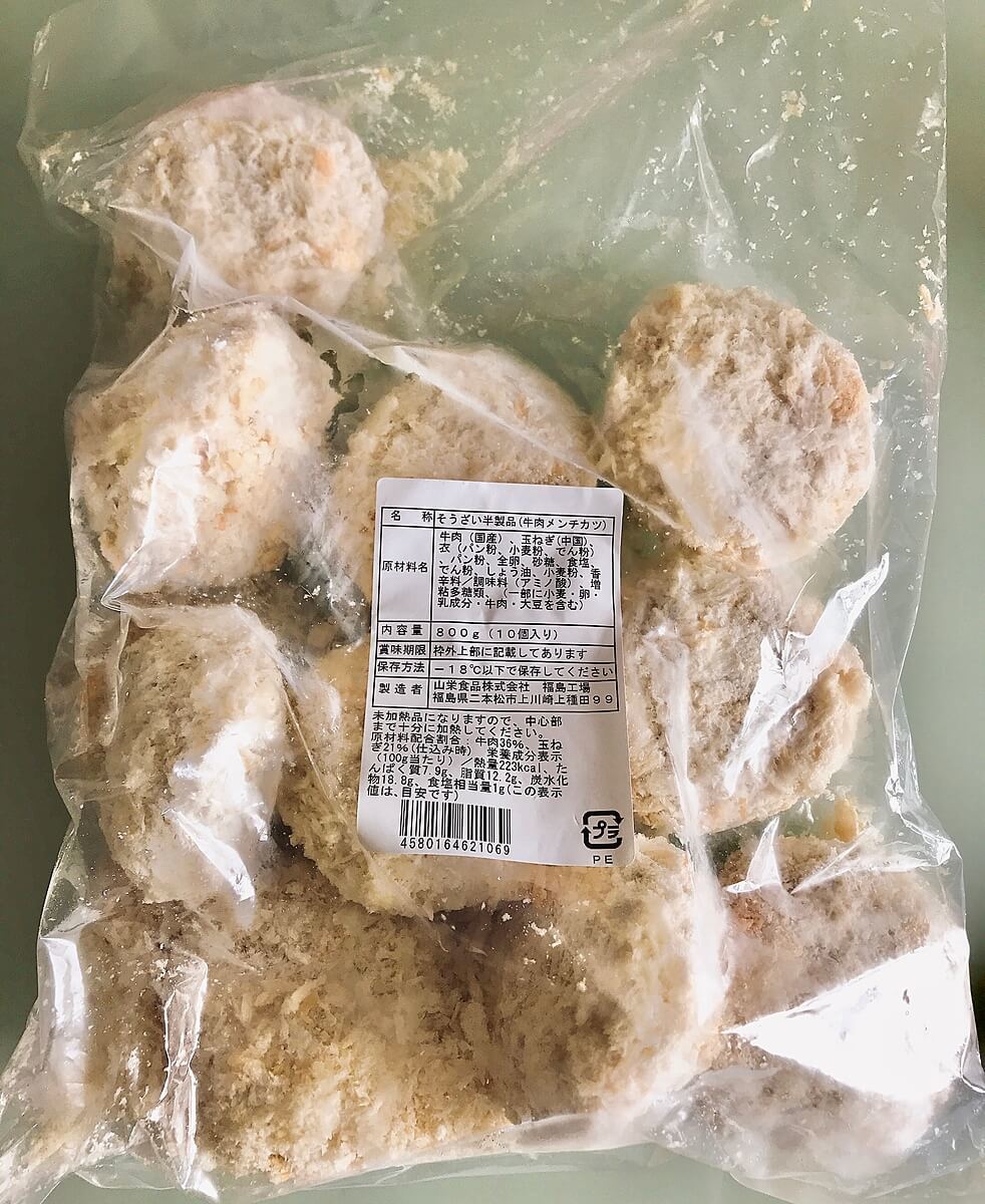 しかも国産牛肉を使ったメンチカツで外はサクサク中はジューシー、冷えても美味しくいただけます。メインのおかずになる事はもちろん、お弁当にも最適です。890円(税別)なので1つあたり90円弱ですがボリューム感と質を鑑みるとGOODな商品です。