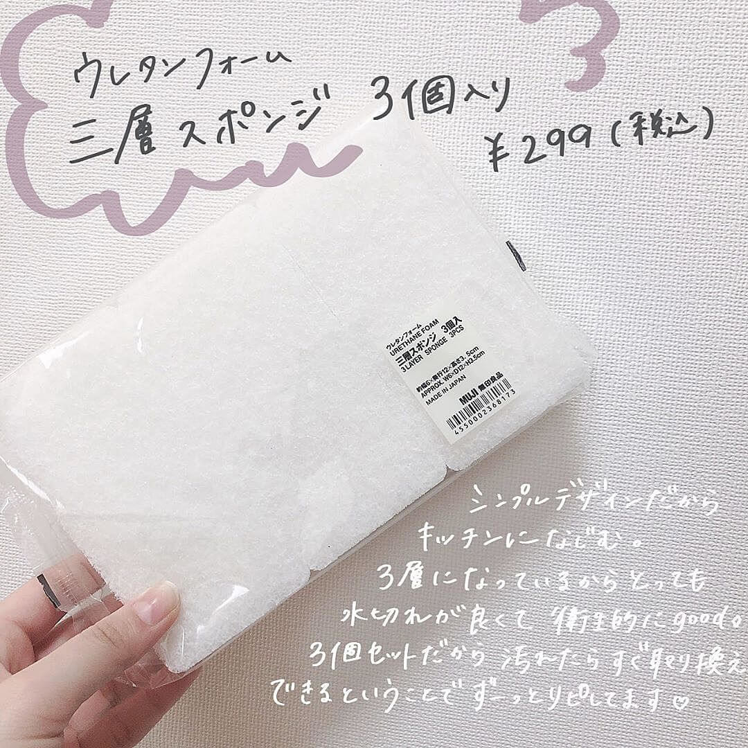 @ka.sumikaさんは、無印良品で販売されている「ウレタンフォーム三層スポンジ 3個入」を愛用しています。