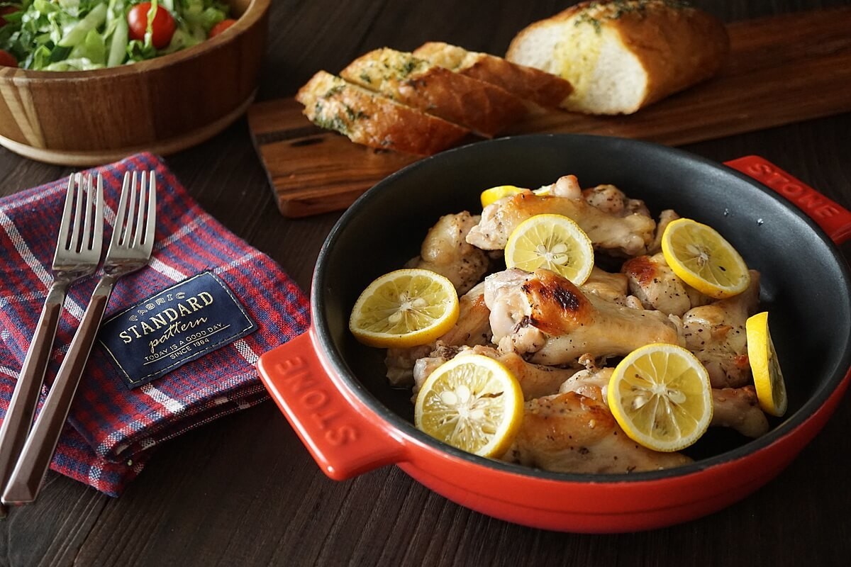 こちらは我が家の定番メニューの塩ドレッシング漬け手羽元です。