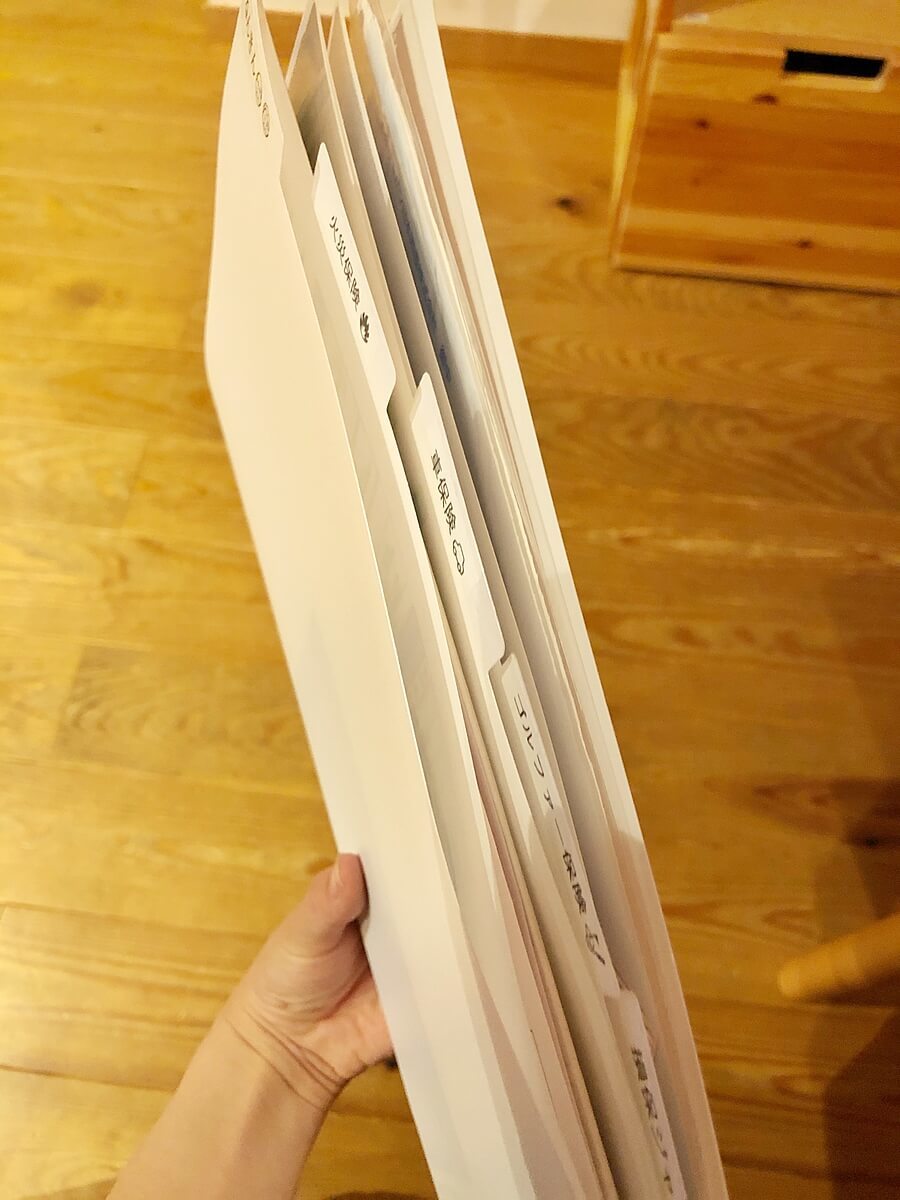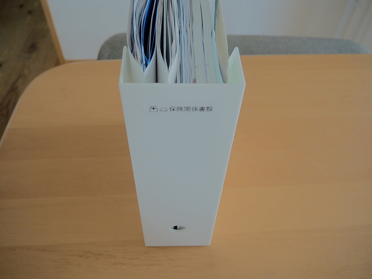 保険関係の書類は、保険証券だけでなく、保険詳細が書いてある約款の冊子など、どうしても置いておかなきゃいけないものが沢山あるので、かさばりがちになります。