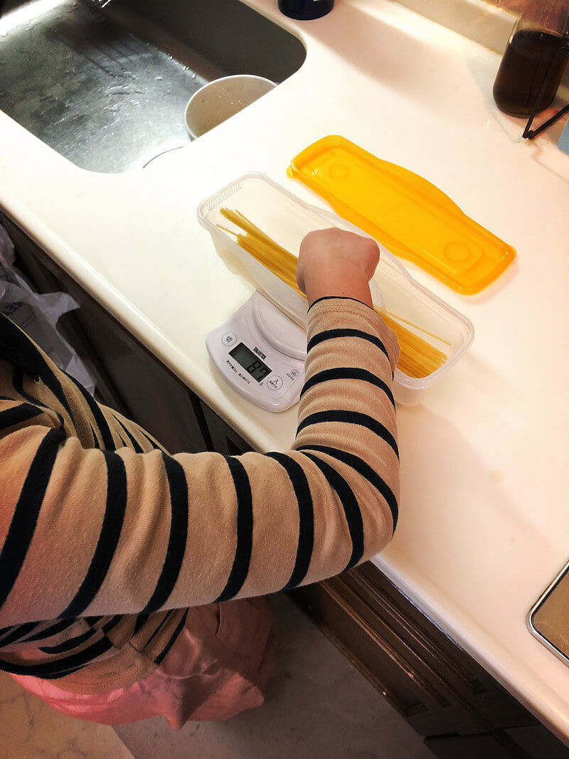 セリアのパスタゆで器、子どもが実践!
