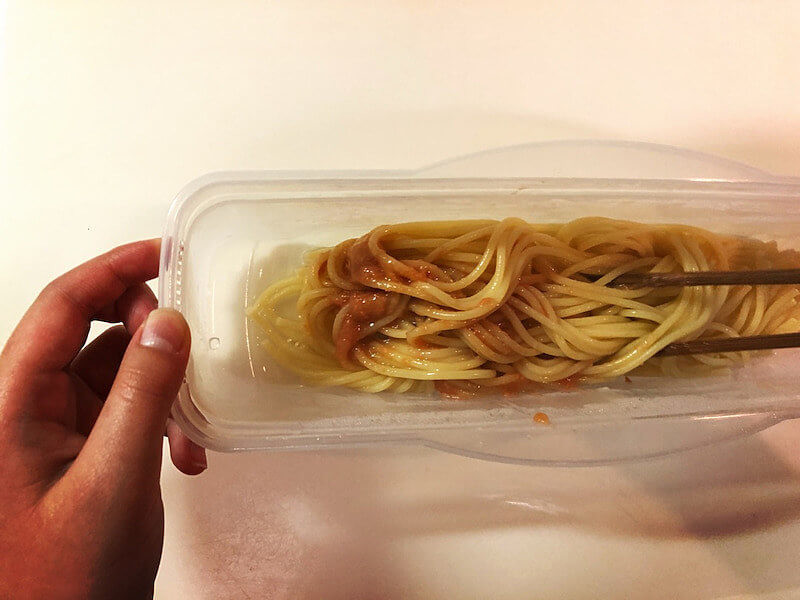14分レンチンしたパスタはこんな感じ。