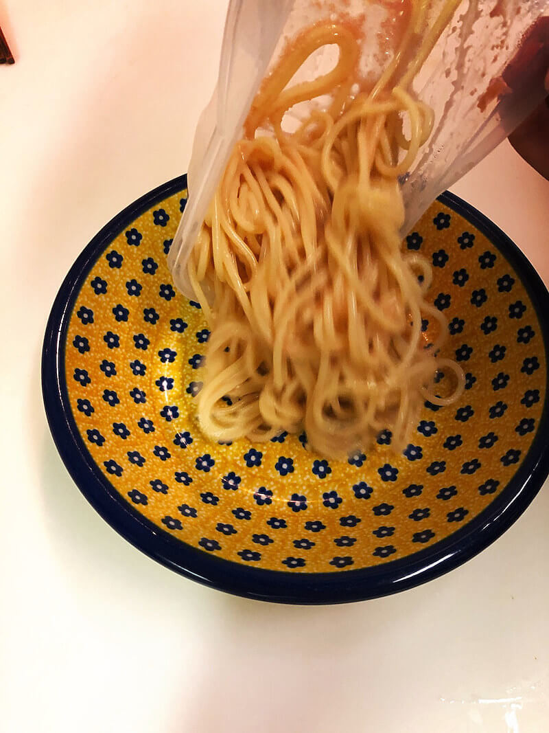 ここへ、パスタソースを入れて