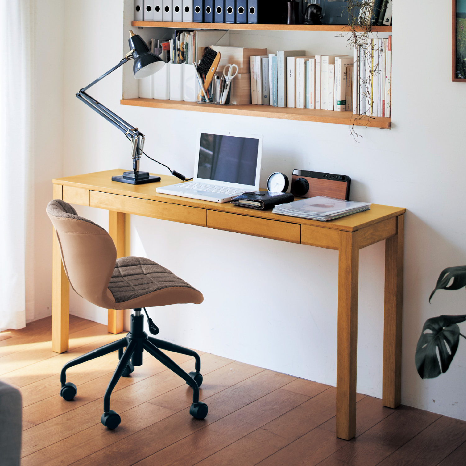 けれども家族の共有スペースでもあるため、その都度パソコンや書類といった自分の持ち物を移動させなければいけないのはなかなか面倒です。 大きくて立派なデスクは必要ないけれど、ちょっとした作業台があれば便利だなと思っていました。