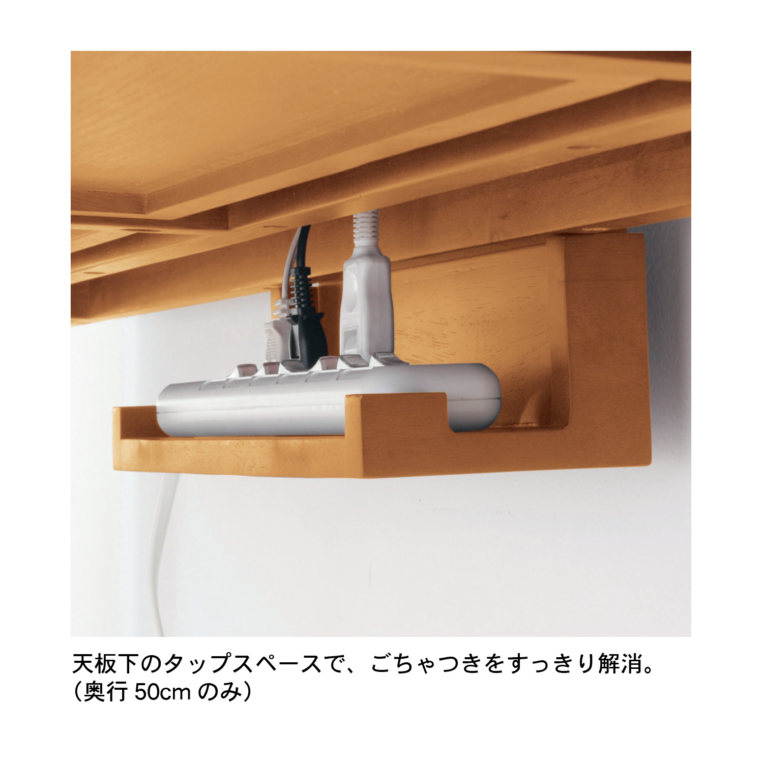 さらに天板下にはタップ収納スペースがあり、見えにくい場所にあるためデスク周りがすっきりします。 コード類の収納で困ることもありませんし、こうした細やかな配慮は本当に嬉しいですね。