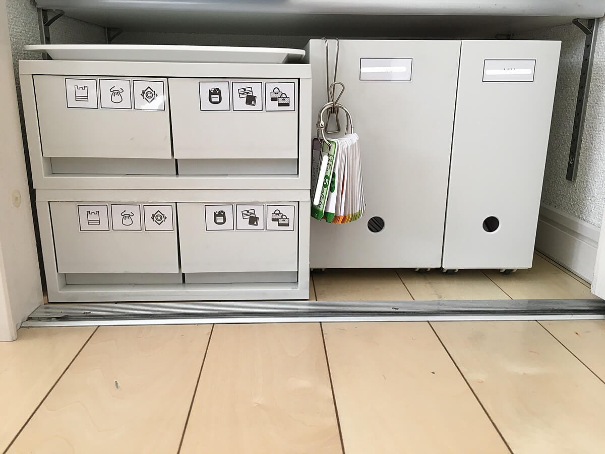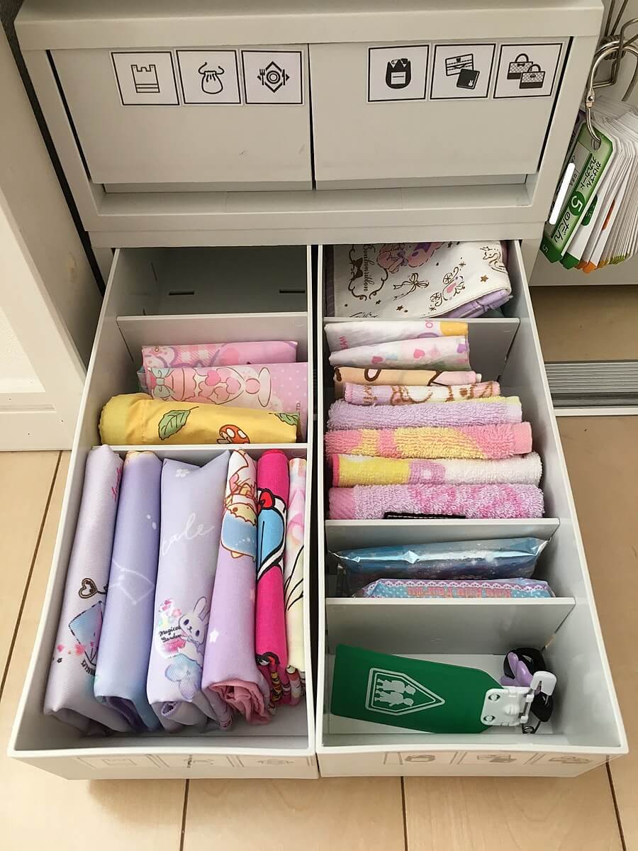 右の引き出しは当日に持参する、ハンカチ・ティッシュ・名札などを入れています。