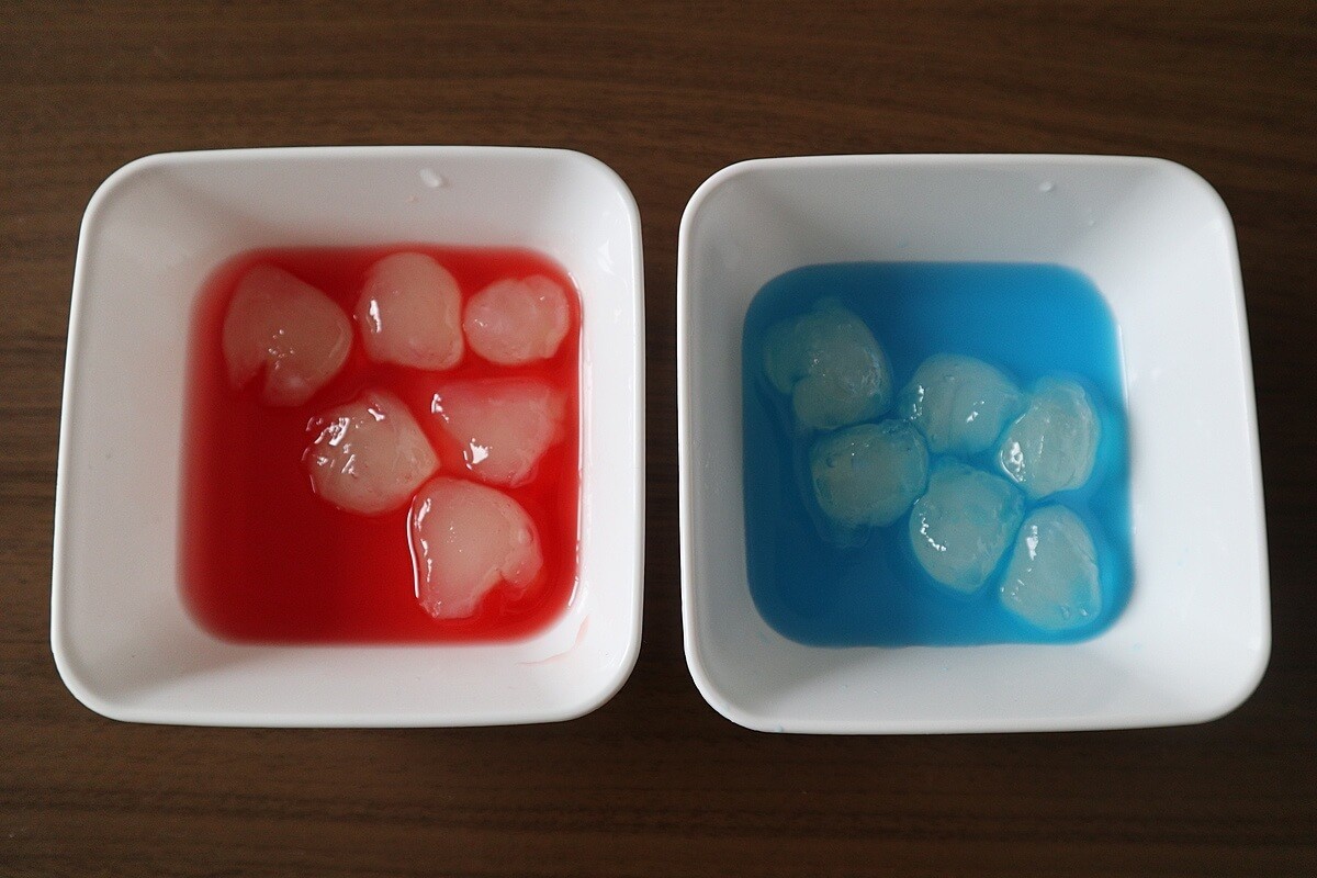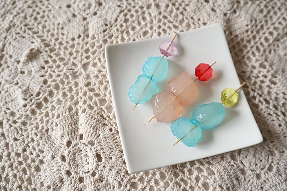 わらび餅の色が付けて宝石見た目なわらび餅の完成!