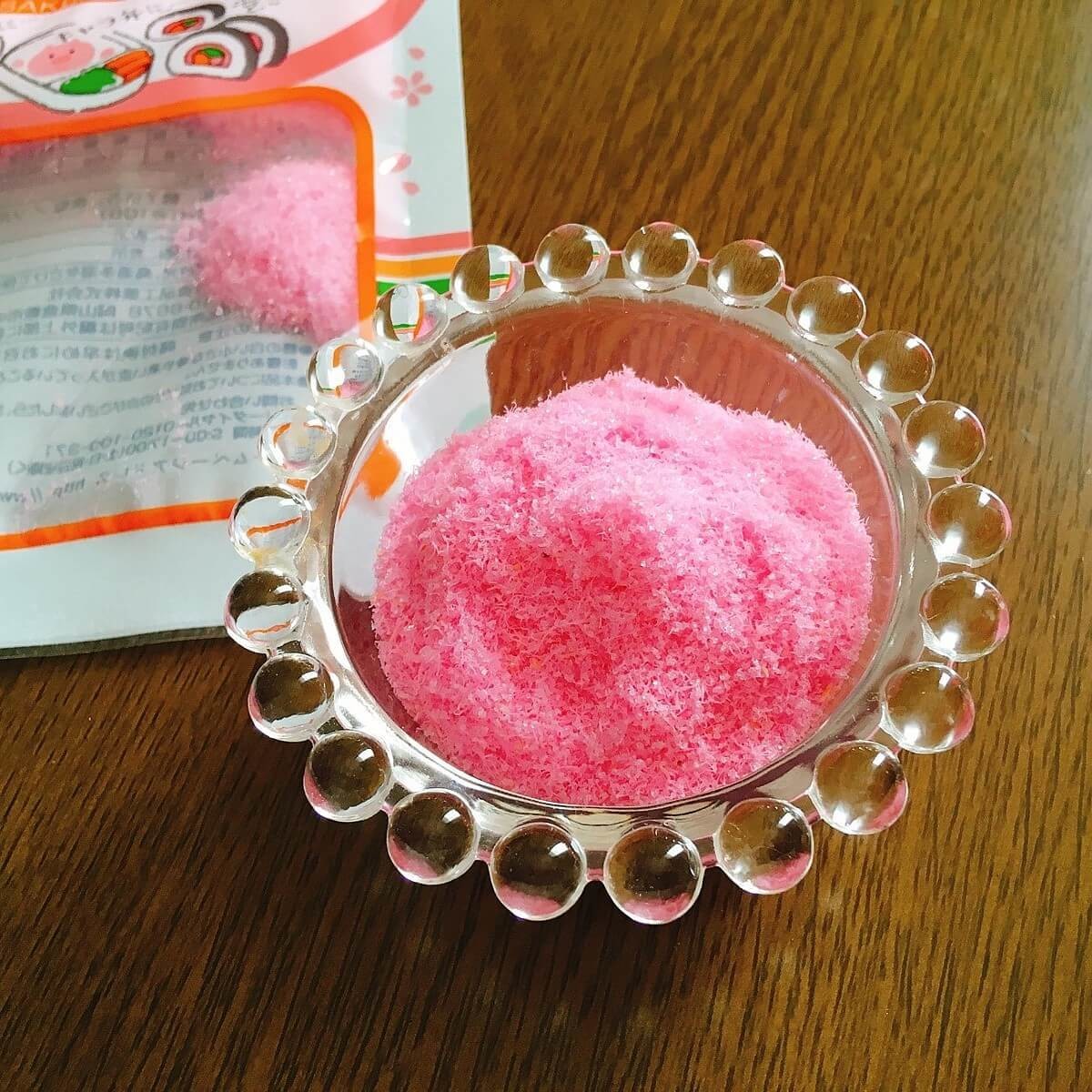 さくらでんぷは、スプーンですくって固まりになるように盛り付けると、見た目も可愛くなるのでおすすめです。