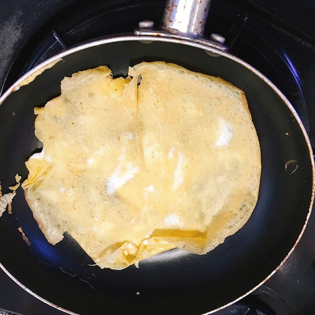 このとき、少量の片栗粉を混ぜて焼くと、たまごが破れにくくなるので、多少雑に焼いてもキレイな錦糸たまごが作れますよ。