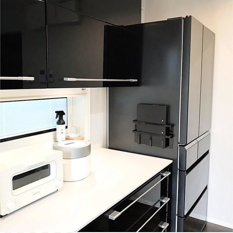ホワイトとブラックの2色展開で我が家の冷蔵庫の色に合わせてブラックにしました。馴染んでくれて生活感消せて大満足です。