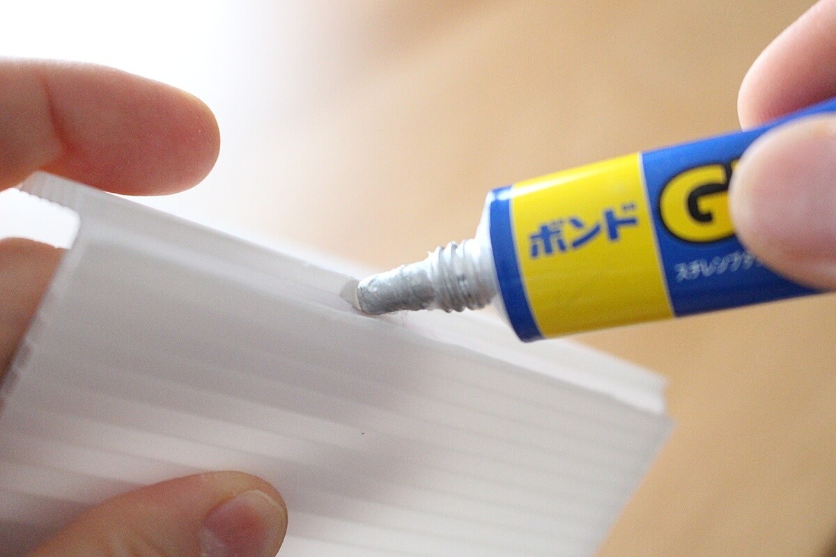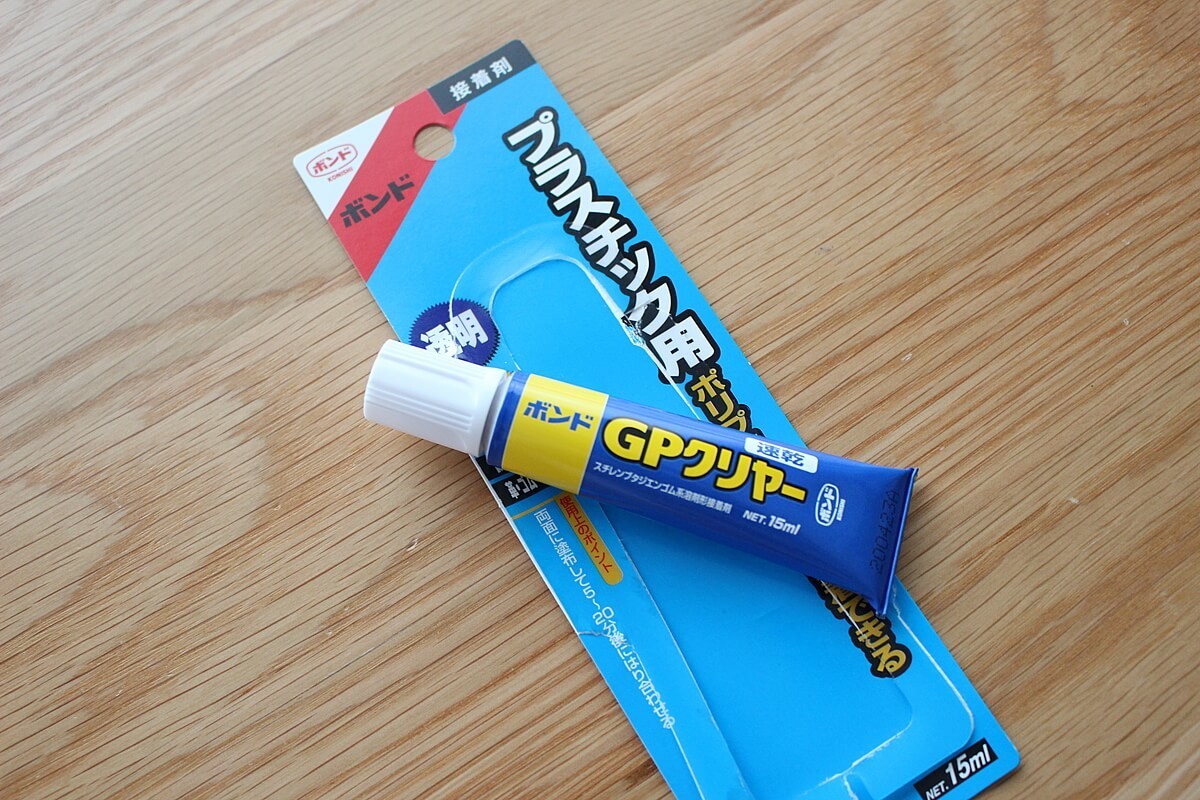 プラバンは材質がポリプロピレンですので、用途に合ったボンドを用意しましょう。 なるべく短時間で完成できるよう”速乾”に惹かれて、セリアで購入しました。