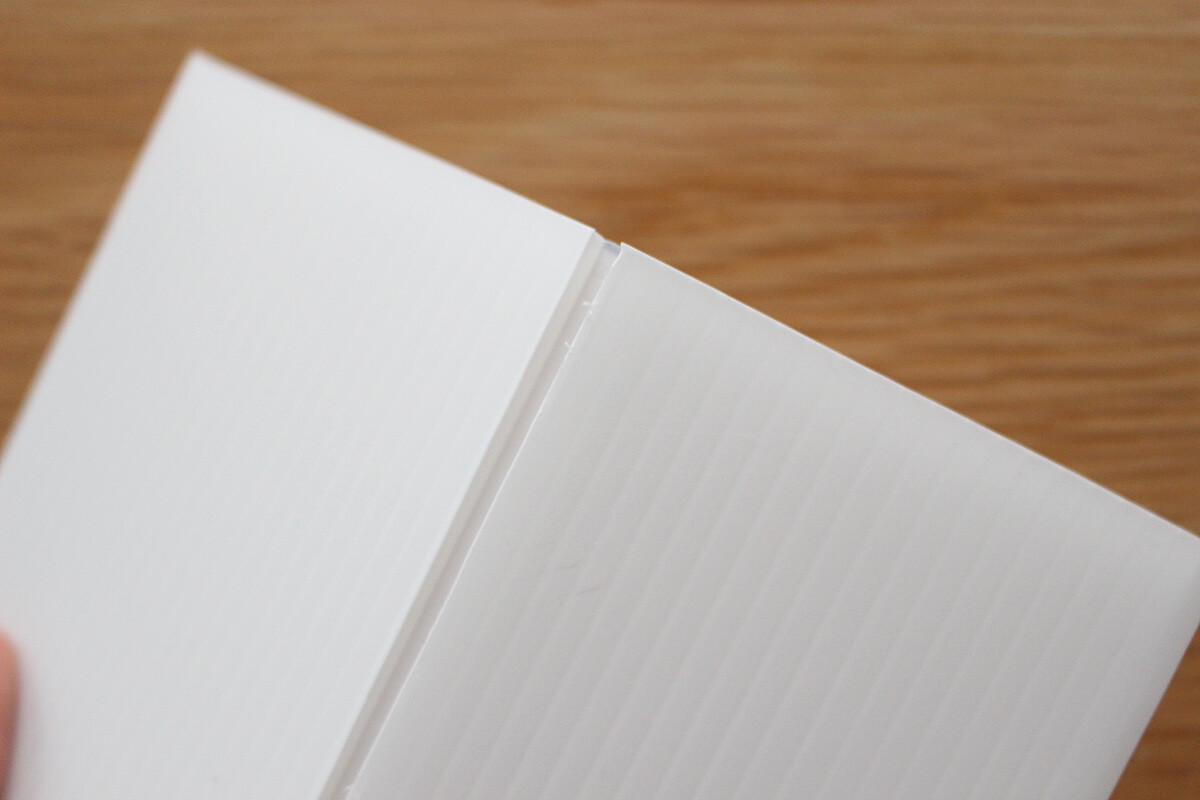 - 隣の筋目を傷つけないようにカッターナイフをおよそ45度傾ける