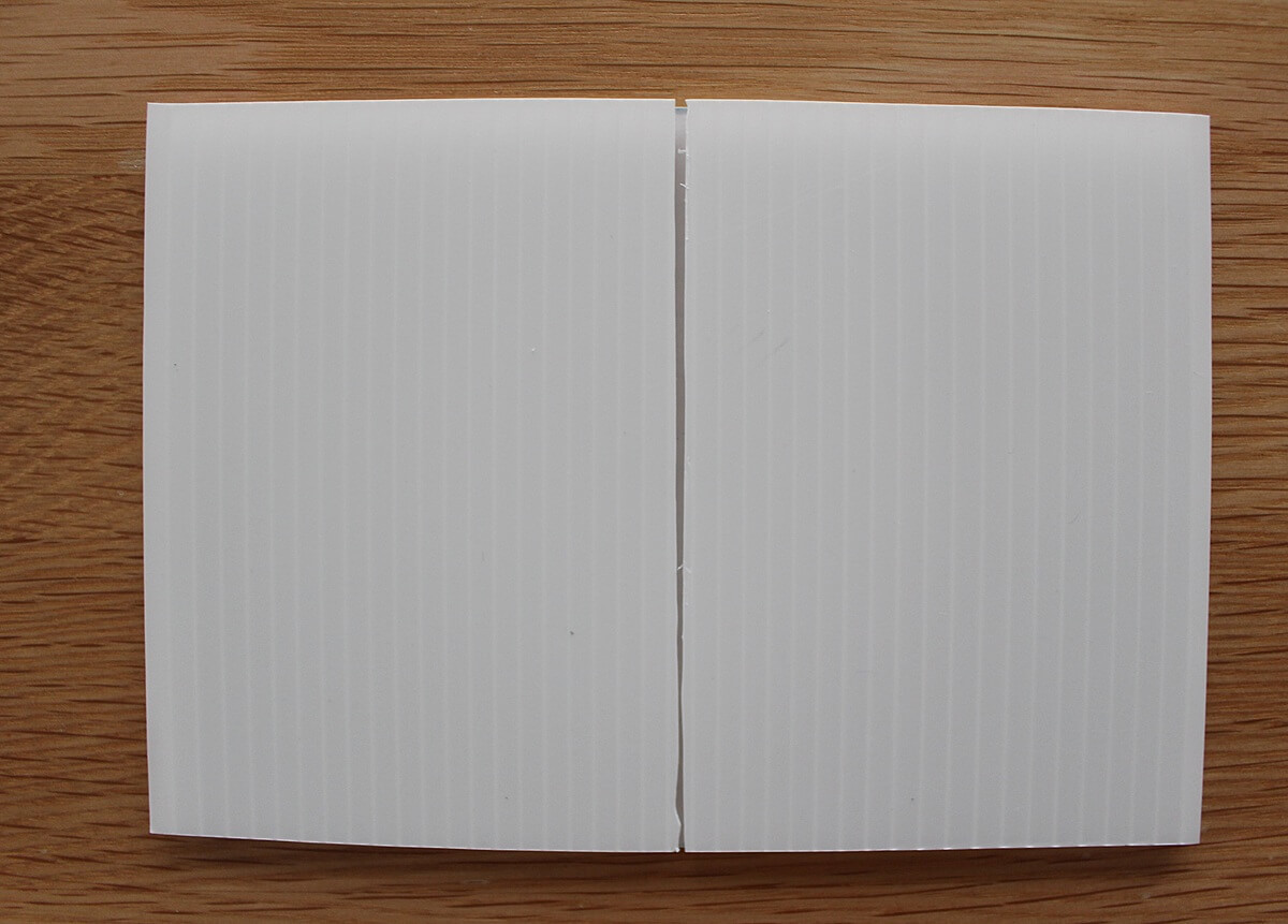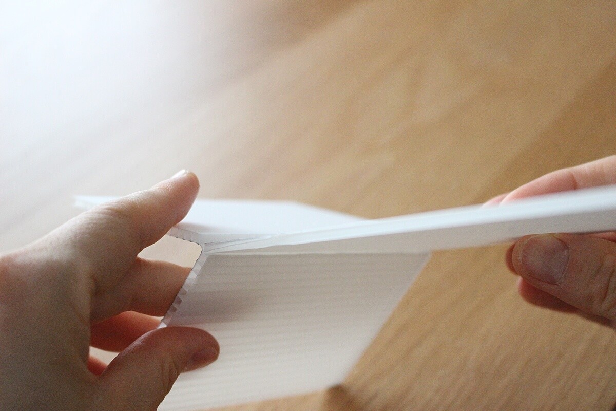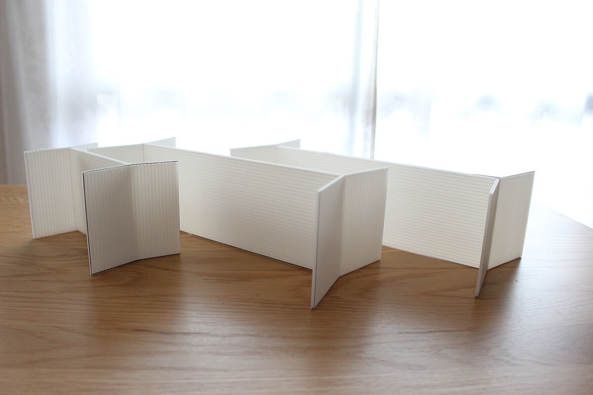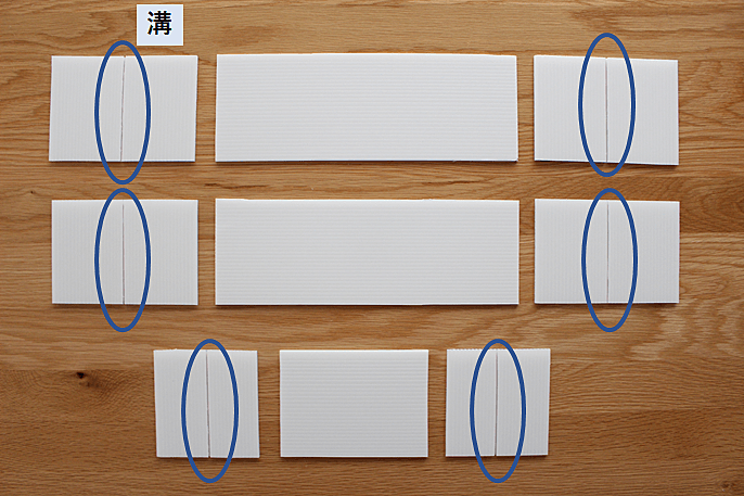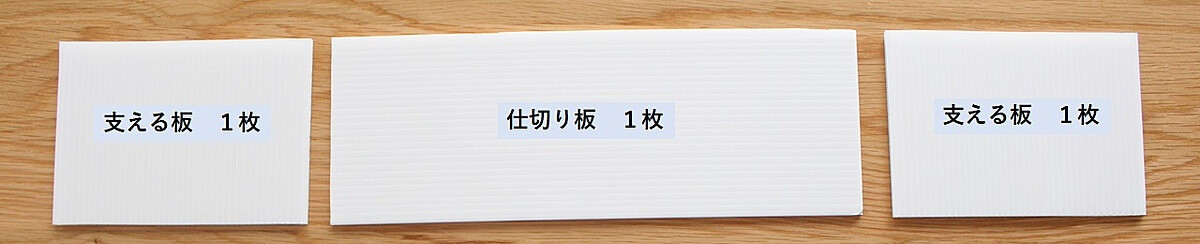 - 支える板の高さは筋目と同じ向きになるようにカットする(仕切り板を筋目に差し込むため)