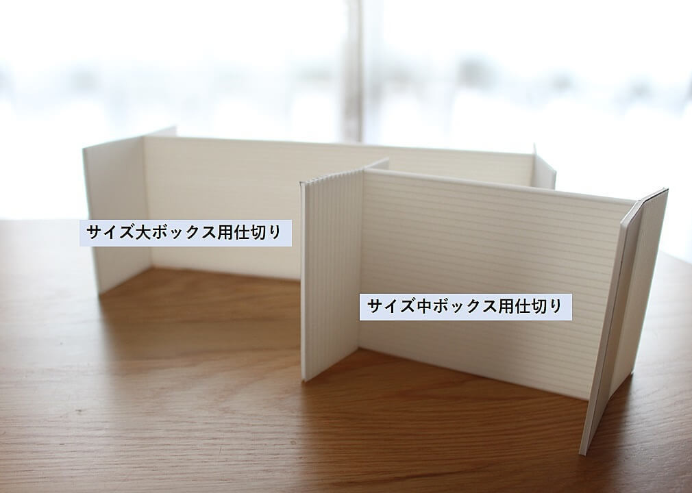 - 仕切り板の横の長さは、ボックスサイズ+1cmで作るとずれにくい