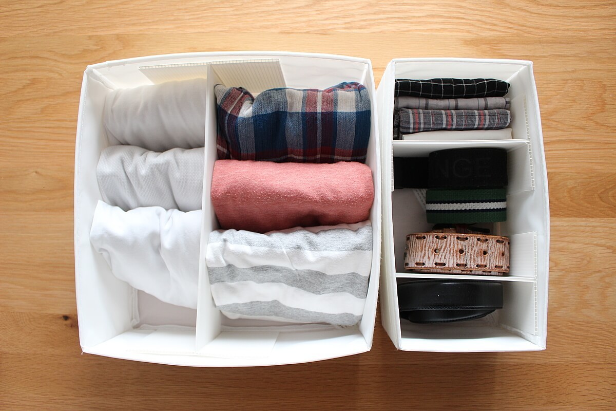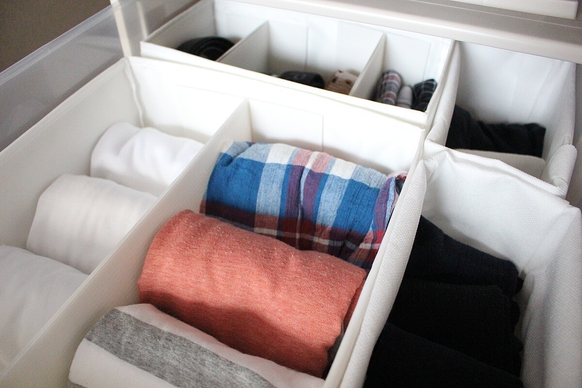 靴下や下着など、どんな色・種類をいくつ持っているのかがすぐに分かるようにしたいアイテムの場合は、細かく仕切ることができ大変便利です。
