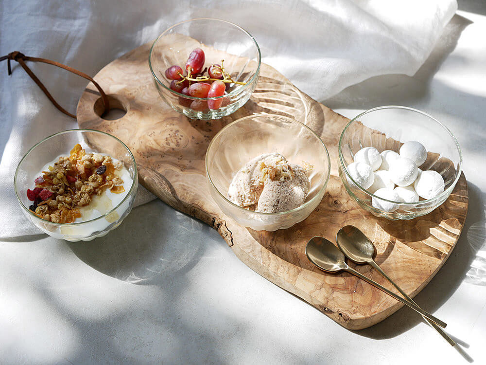 クリアな見た目が中のものを引き立たせてくれるので、ぶどうなどのフルーツを入れてみたり、ちょっとしたクッキーやお気に入りのアイスクリームを入れて楽しむのも◎。