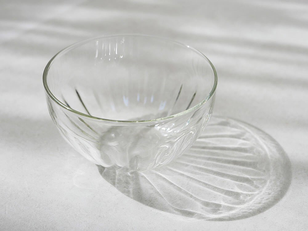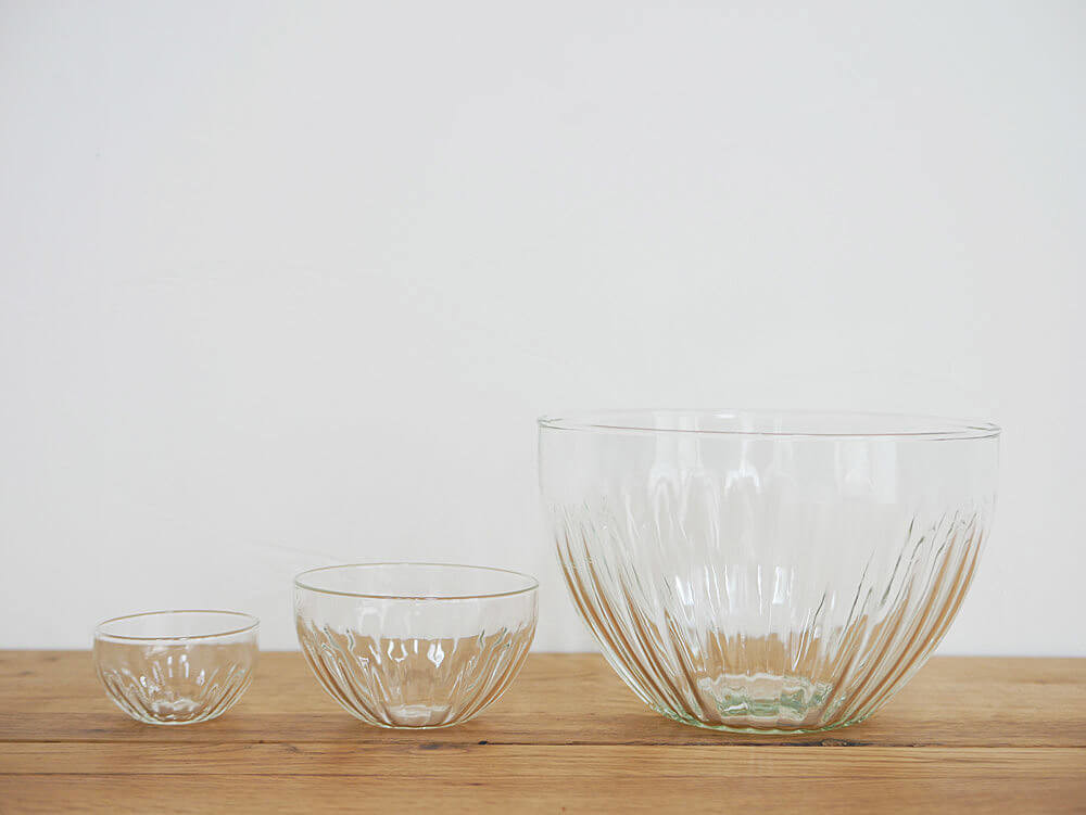 スリットのような美しいラインが印象的な3種類のガラスボウルをご紹介します。