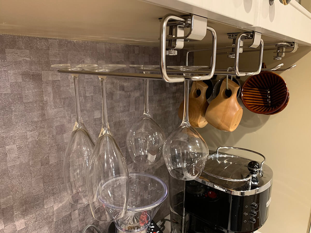 ワイングラスは割れやすいため、戸棚の奥の方に置いておくという方も多いかもしれません。しかし、戸棚の中では取り出しにくく不便です。だからと言って、キッチンカウンターに出しっぱなしにすると何かの拍子に手や物がぶつかって割ってしまうリスクもあります。