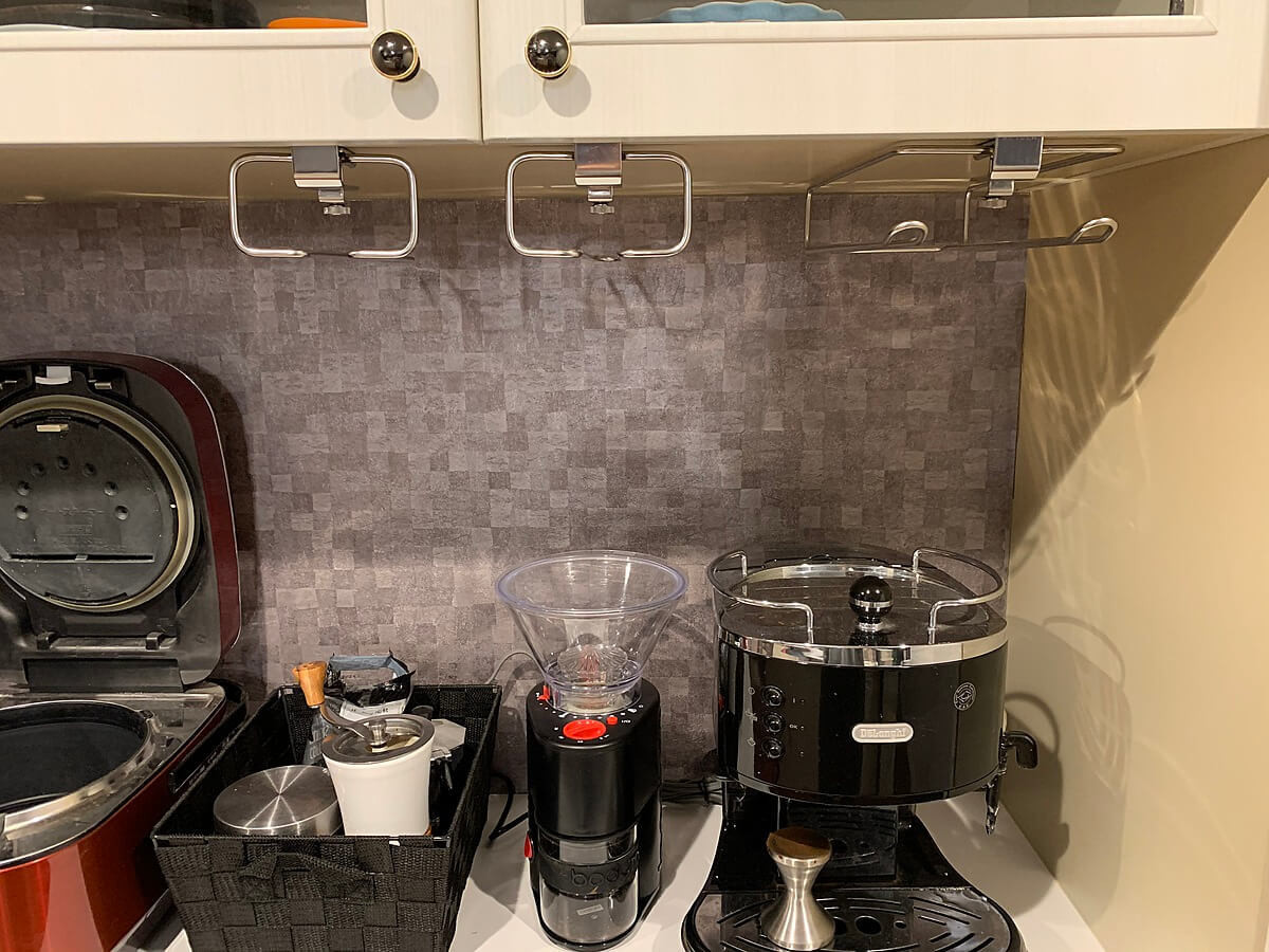 デッドスペースになりがちな戸棚や食器棚の下に吊り下げ式収納を活用すれば、キッチンはより快適で使いやすい空間になりますよ。