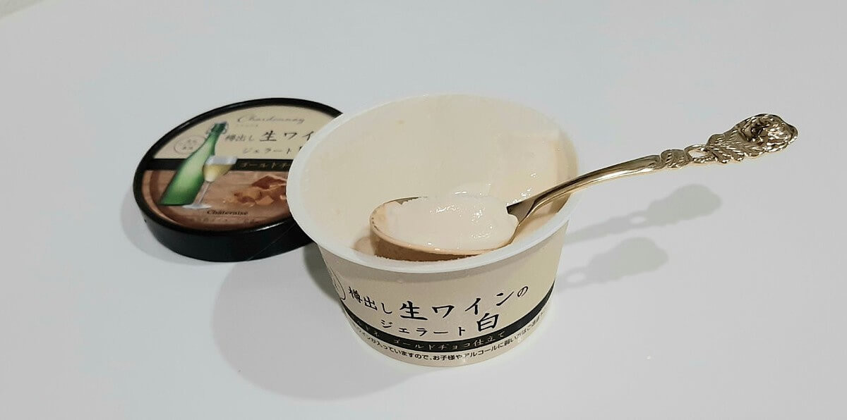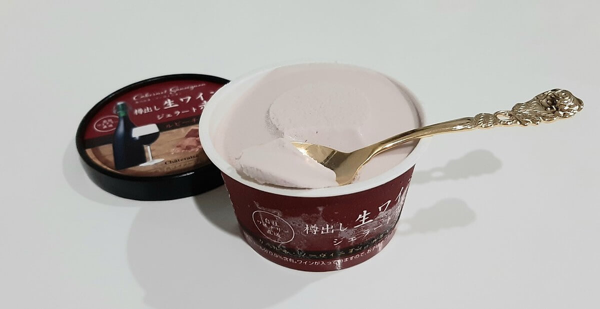 芳醇なワインの香りが鼻を抜け、コクのある濃厚な甘味のジェラートを引き立てています。一口食べたらそのおいしさにびっくり。