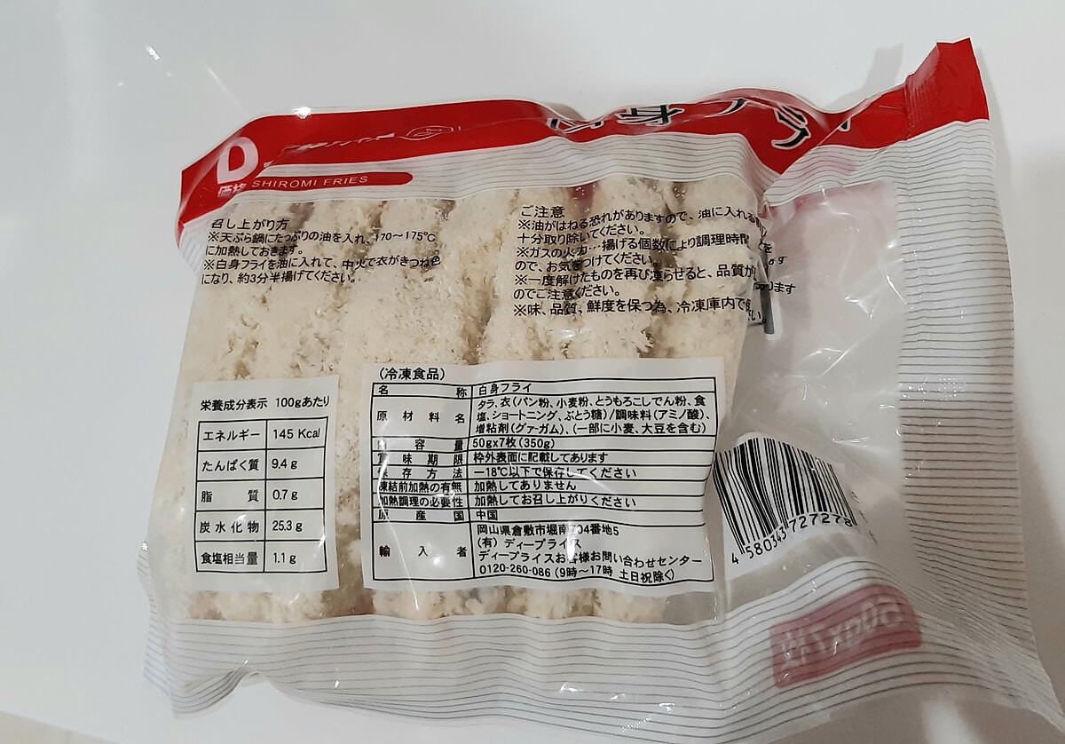 裏面を見てみると「タラ」の表示が。 タラに衣をつけただけのシンプルな内容ですね。