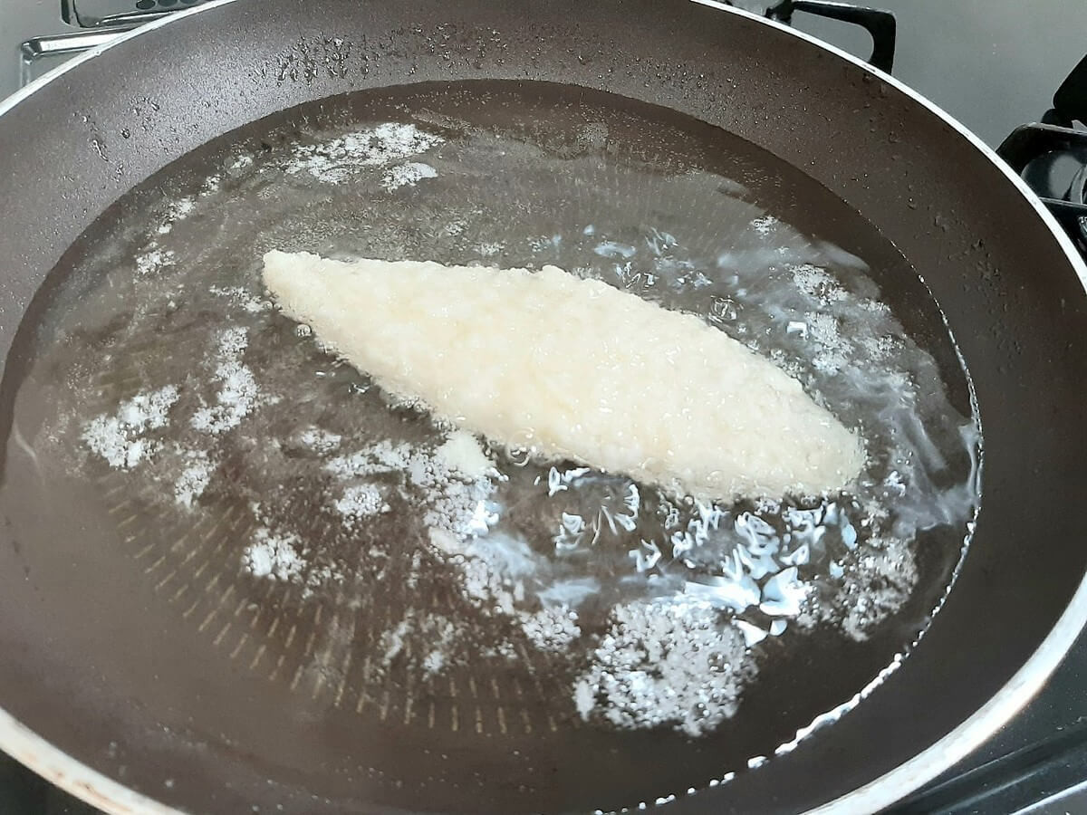 よく見る白身フライの形。一個一個が微妙に大きさが違いますが、どれもきれいに衣がついています。
