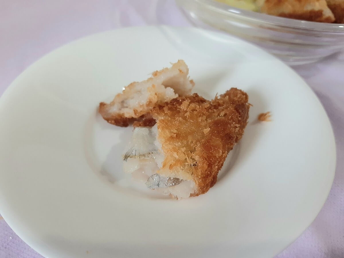 もちろん気にならない人もいるかと思いますが、私はもう少し薄めの衣が好きです。 衣と魚の間のつなぎの部分がとってもしっかりしているので、一枚食べるころには重くなるんです。