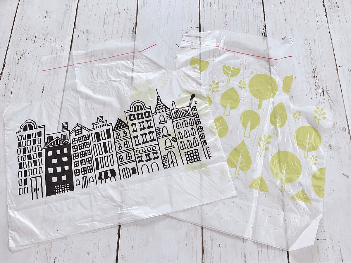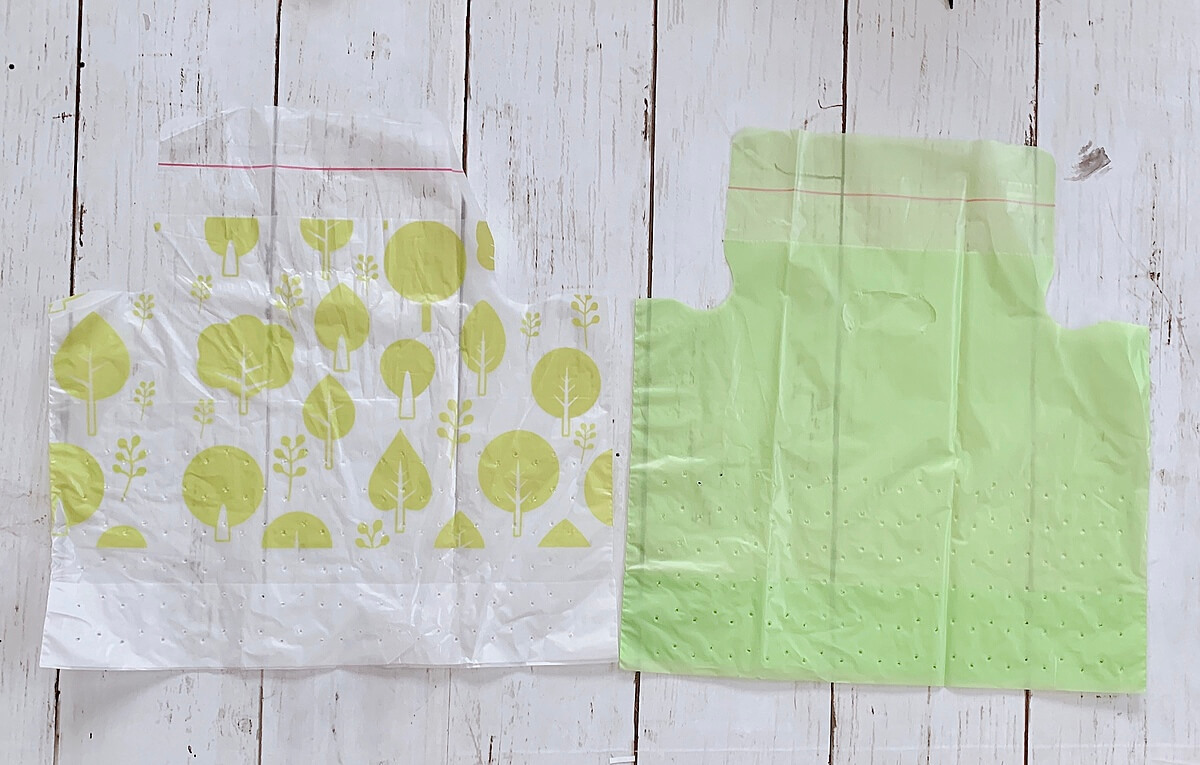 穴有りゴミ袋も黄緑と、葉っぱのイラストが付いている2種類でした。