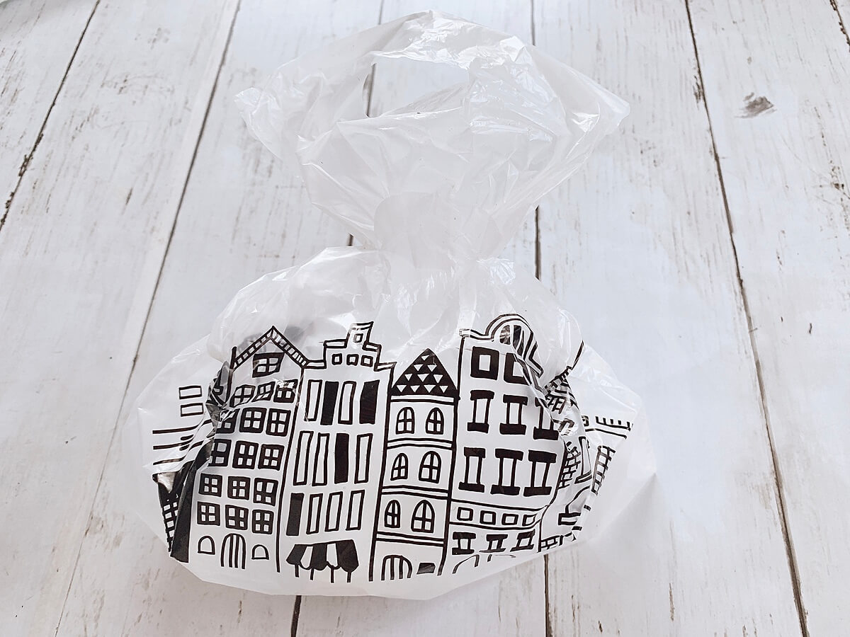 わざわざ持ち手を結ばなくても簡単に袋を閉じる事が出来ました。