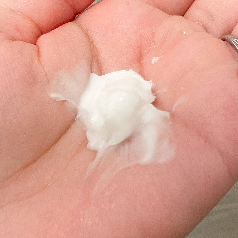 ヘアマスクはこっくりとしていて、硬めのクリームのようなテクスチャ。