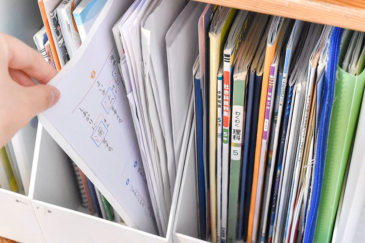 学年ごとのお便りや参観日のお知らせなど保護者向けのプリント類は、一定期間保管したり時期が過ぎれば処分したりと割と管理しやすいのですが、テストや学習プリントなど子ども用のプリント類をどうしたらいいか分からず、どんどん溜まって困っているという声をよく聞きます。
