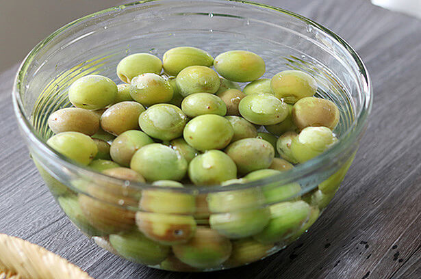 青梅はアクを抜くために1時間ほどたっぷりの水につけておきます。