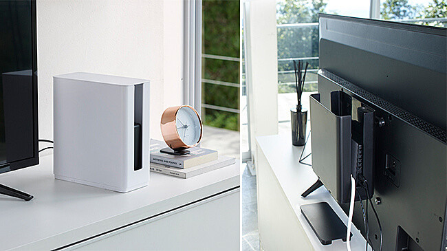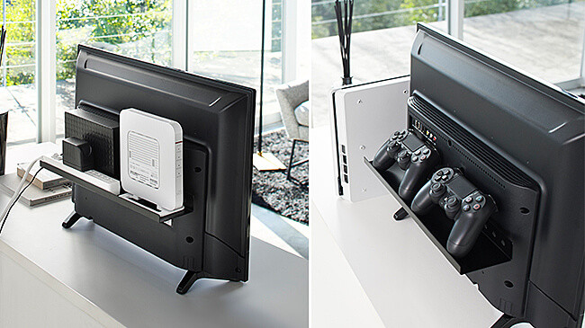 テレビの裏面に簡単取り付け!薄型テレビ上と裏のスペースを有効活用。