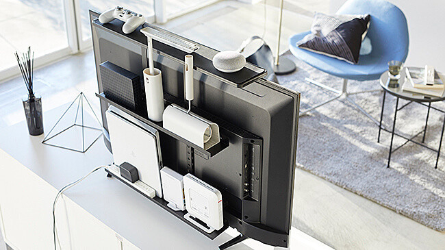 薄型テレビ上のスペースを有効活用。スマートスピーカー(AIスピーカー)・リモコン・録画用HDD・ゲーム周辺機など、テレビ周りの小物が置けて便利。