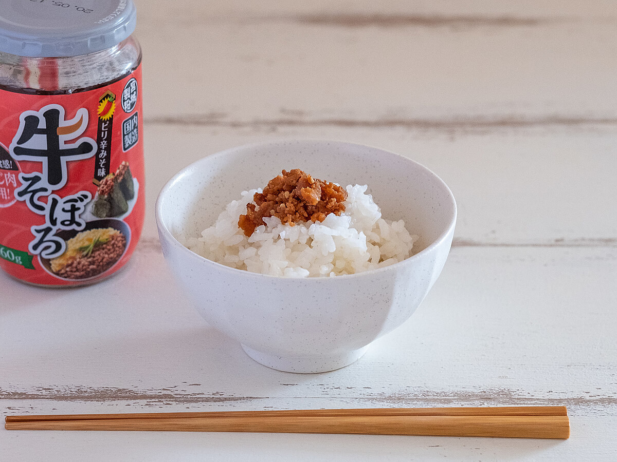 ピリ辛みそ味の「牛そぼろ」はしょうがと豆板醤でピリ辛に