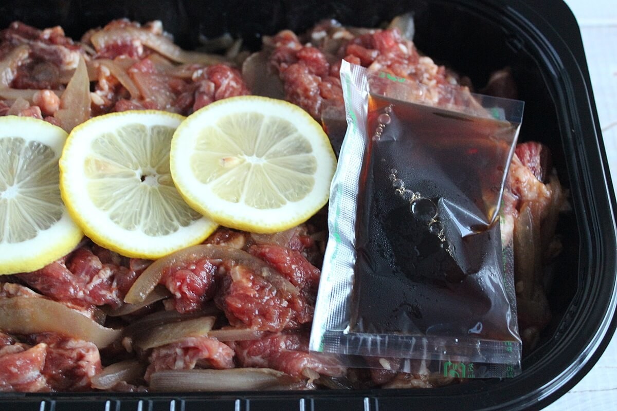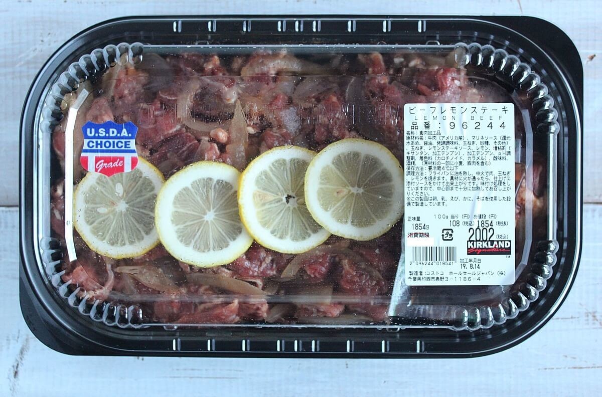 でも、コストコの千葉ニュータウン倉庫店で私が購入したレモンステーキは、お肉自体はプルコギビーフのようなカットになっており、一般的に言う、ステーキという感じの大きさではなかったです。