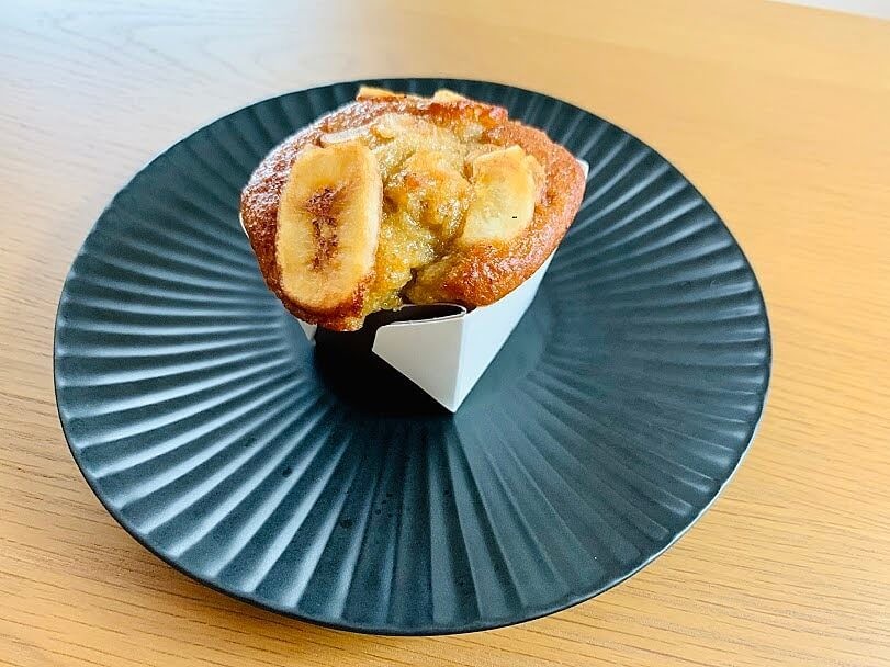 う~ん生地がとってもバナナ~!砂糖などではないバナナの優しい自然な甘さ。ふわふわというよりしっとりもちもち。想像していたマフィンではなく、蒸しパンのような感じです。