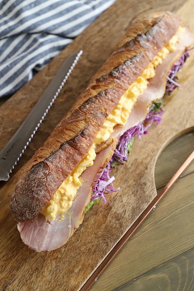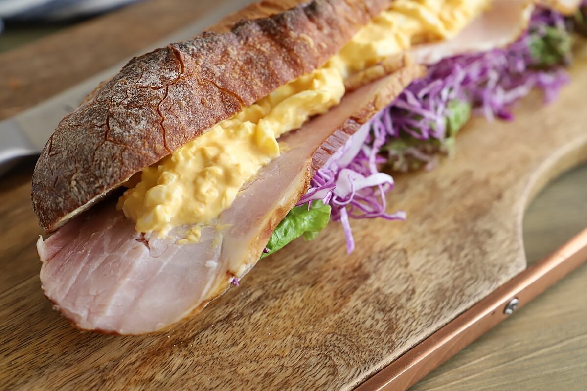 まずはこの大きさを利用して、定番のバゲットサンドを作ってみました。