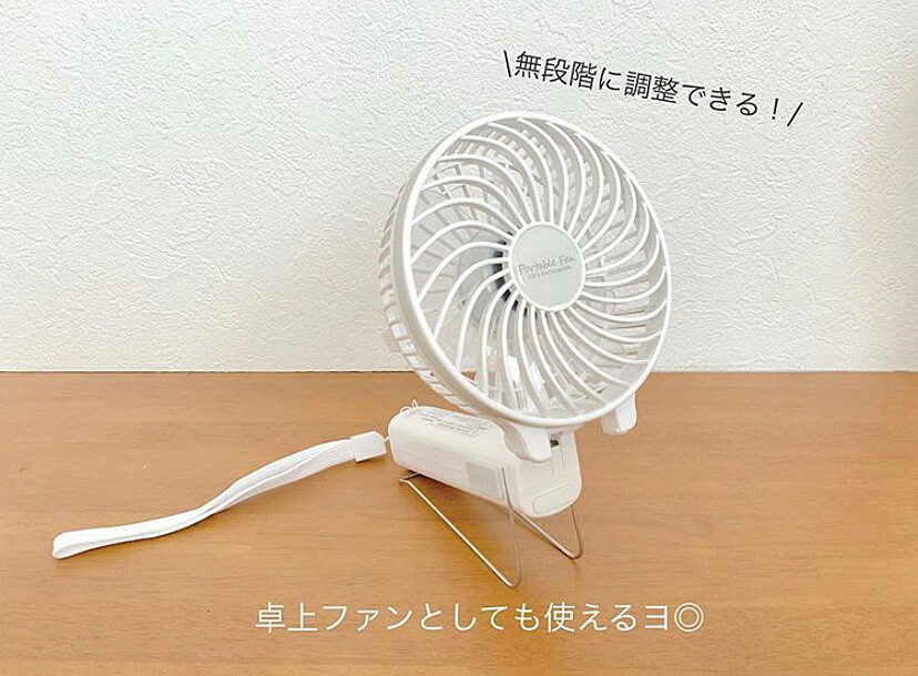 @yuriaaalilyさんがニトリで購入したのは、充電式ミニハンディファン! 3段階で風量の調節ができるため、お好みの風で使用することができます。