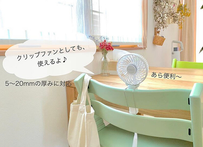 こちらのハンディファンは、スタンドが搭載されているためテーブルなどに設置して使用することも可能です。@tinokunfamilyさんは、キッチンや犬のお散歩で使えるように購入されたそうですよ。