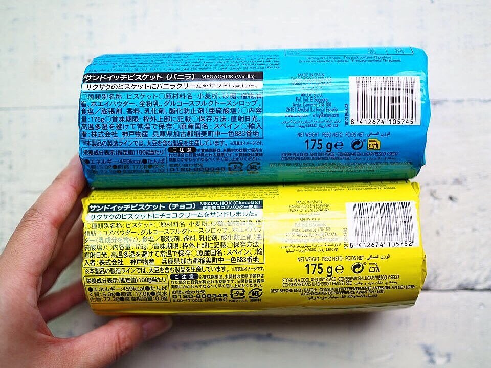 原産国はスペインで、サクサクのビスケットにバニラ・チョコクリームがサンドされています。