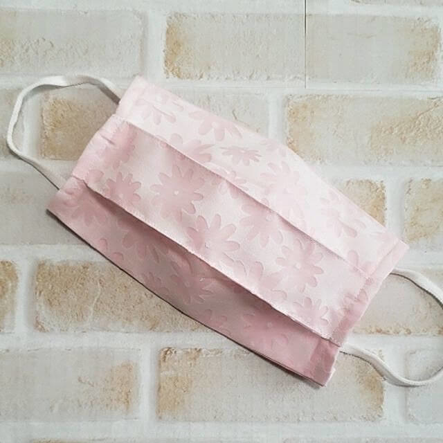 こちらは、シースルーになった花柄の生地がピンク色の生地に重なった、可憐なマスクカバーです。ひと工夫を感じる繊細な仕上がりにキュンっとします♡