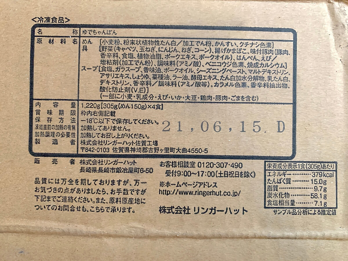 今回通販で取り寄せしたのは、「リンガーハット長崎ちゃんぽん4食セット」。