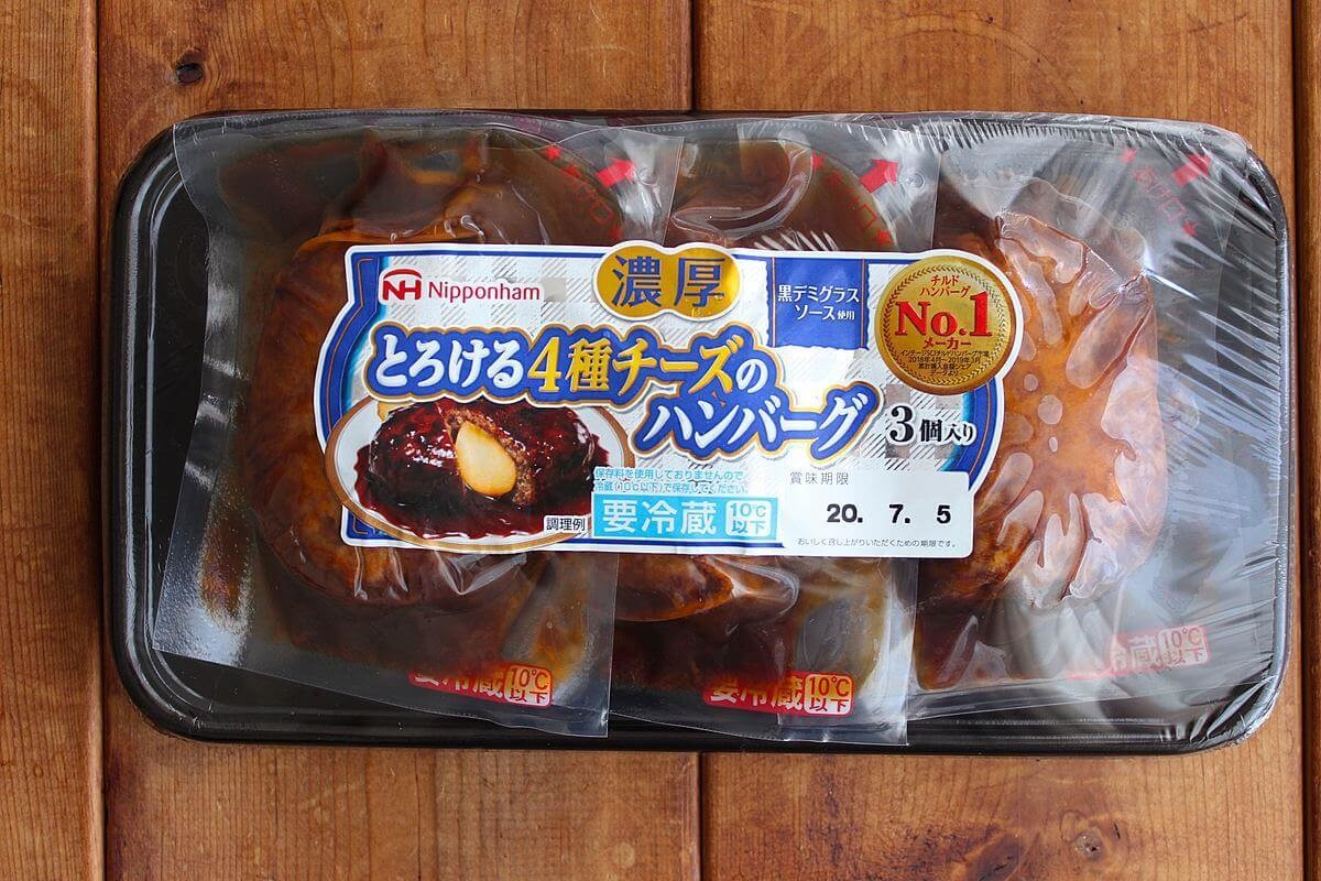 今回見つけたのは、こちらの「濃厚とろける4種チーズのハンバーグ」!